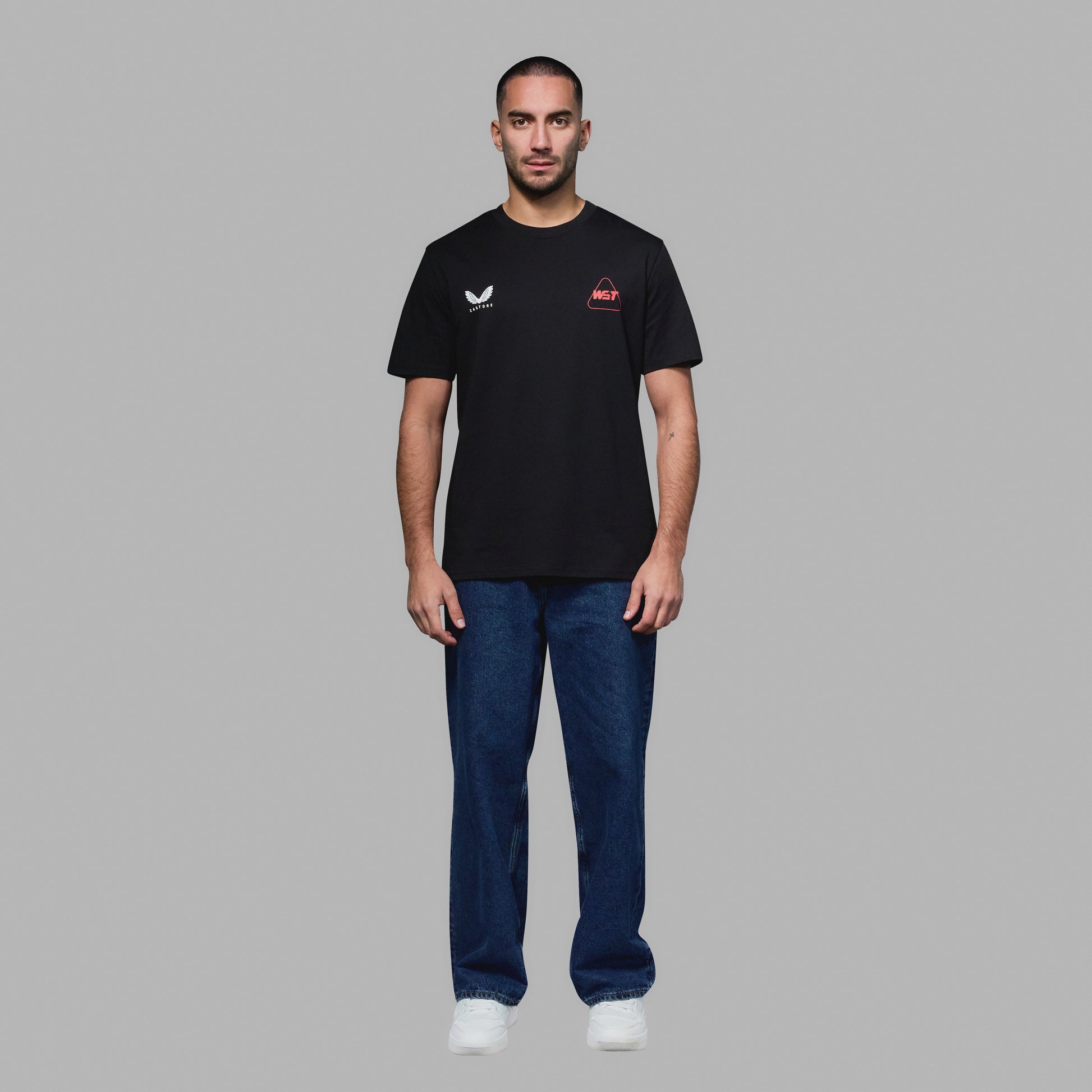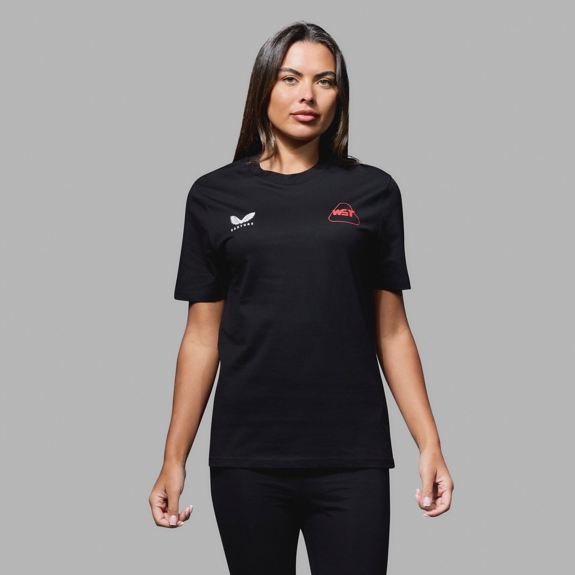 The front of the T-shirt features clean, minimal branding with the Castore wing emblem and the official WST logo. On the back, a large vertical Triple Crown graphic showcasing all three of snooker’s major trophies: the World Championship, The Masters, and the UK Championship.